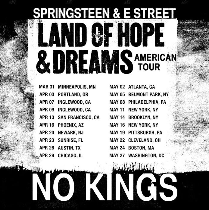 Em 2025, Bruce Springsteen e a E Street Band levaram a turnê Land Of Hope And Dreams para mais de 700 mil fãs em toda a Europa. A série de apresentações incluiu o lançamento do EP ‘Land Of Hope And Dreams’, disponibilizado na noite de estreia da etapa europeia em Manchester, na Inglaterra.
