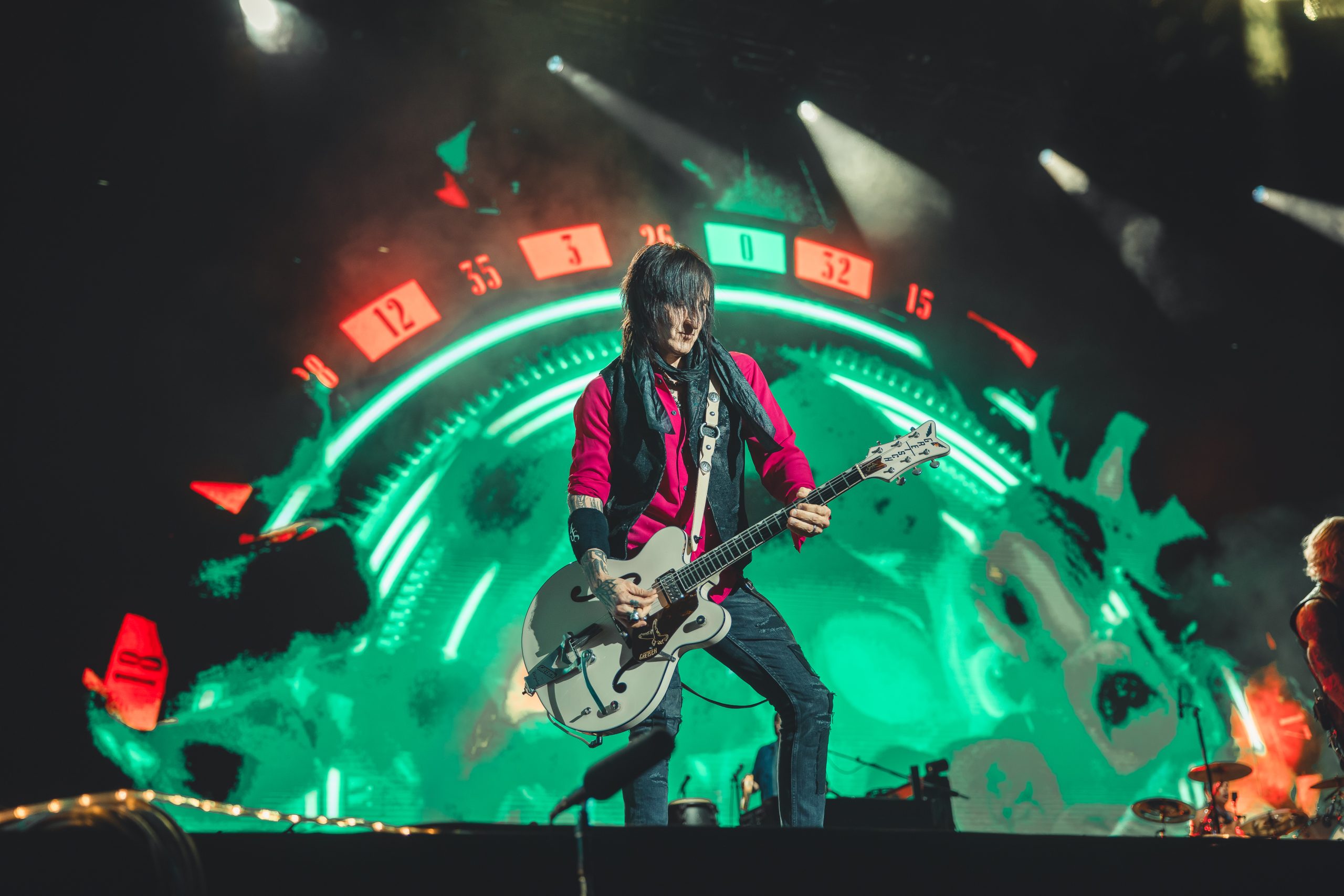 Pontualmente às 20:30h, a outrora “banda mais perigosa do mundo” entrou em cena: o Guns N’ Roses. Escalada como principal nome da noite, Axl Rose e cia retornaram a São Paulo poucos meses depois da última vinda ao Brasil, em outubro de 2025, quando inclusive o grupo foi anunciado como headliner do Monsters of Rock.