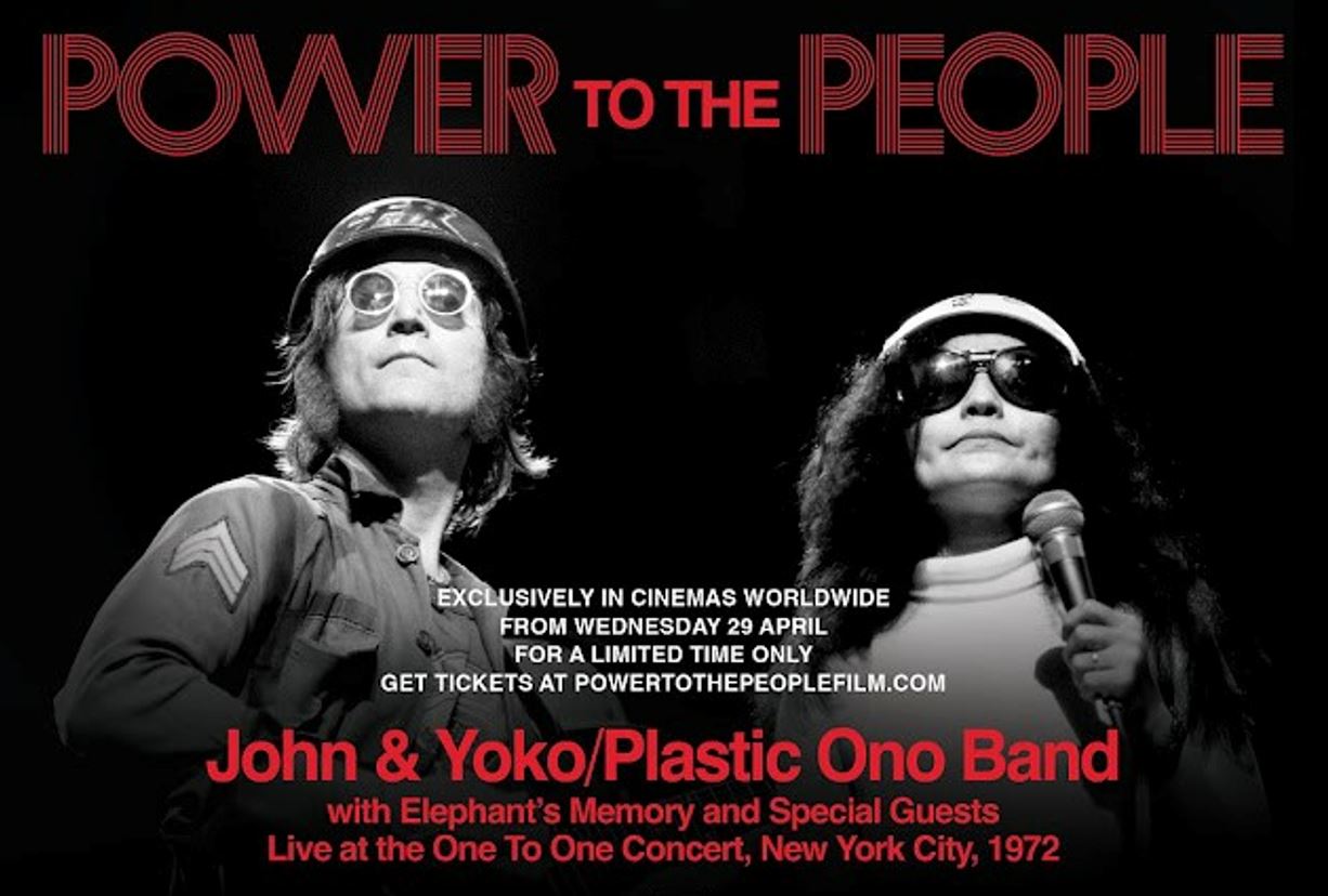 O novo filme-concerto que reúne os últimos shows completos de John Lennon chegará aos cinemas a partir de 29 de abril, distribuídas pela Trafalgar Releasing. Intitulado ‘Power to the People: John & Yoko Live in NYC’, o longa multicâmera foi registrado durante dois grandes shows realizados em 30 de agosto de 1972, no lendário Madison Square Garden.