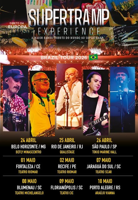 Formada por músicos virtuosos que percorrem o mundo encantando plateias, a SUPERTRAMP Experience é a única banda europeia reconhecida por Roger Hodgson, e é considerada por muitos como a mais impressionante apresentação ao vivo (tributo) da obra do Supertramp em atividade hoje.