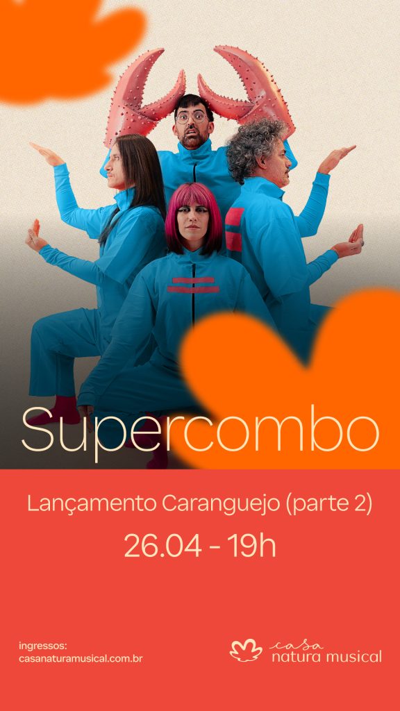A Supercombo realiza no dia 26 de abril, na Casa Natura Musical, em São Paulo/SP, o show de lançamento da tão esperada parte 2 do álbum Caranguejo. A casa abre às 19h e esta apresentação marca a primeira execução ao vivo das novas músicas que completam o disco do momento do quarteto.